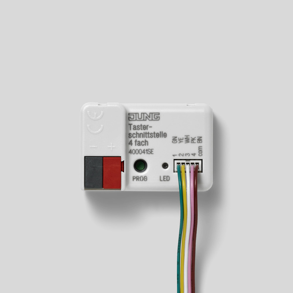 Die KNX Tasterschnittstelle von JUNG erlaubt die nahtlose Integration verschiedener Sensoren und Schalter in ein KNX System. Das ermöglicht eine effizientere und komfortablere Steuerung der Gebäudefunktionen. Taster, Tür-/Fenstersensoren, Hotelcard- oder Schlüsselschalter können über die potentialfreien Kontakte einfach in das KNX System eingebunden werden. Dies ermöglicht eine intelligente Steuerung von Beleuchtung, Heizung, Klimaanlage und anderen elektrischen Geräten. Ein weiterer großer Vorteil der Tasterschnittstelle ist ihre Vielseitigkeit. Sie unterstützt sowohl Leckage- und Betauungssensoren, als auch Temperatursensoren sowie Tür- und Fensterkontakte. Damit können Bauherrinnen und Bauherren die Sicherheit und Energieeffizienz ihres Gebäudes erhöhen. Die Tasterschnittstelle ist in 2-fach, 4-fach und 8-fach erhältlich.
